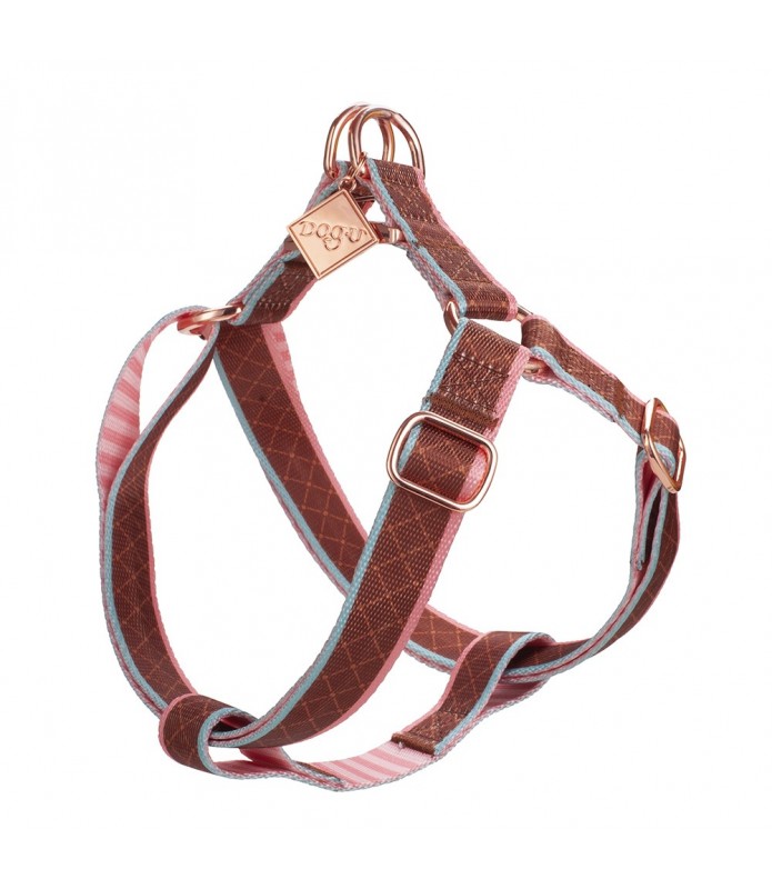 La pechera tradicional para perro con diseño exclusivo Paris tiene un ajuste perfecto gracias a su cinta de poliéster ultra tejida con una textura suave y lisa. Todos sus acabados son de aleación de zinc e incluye una placa de identificación para que registres la información de tu perro.